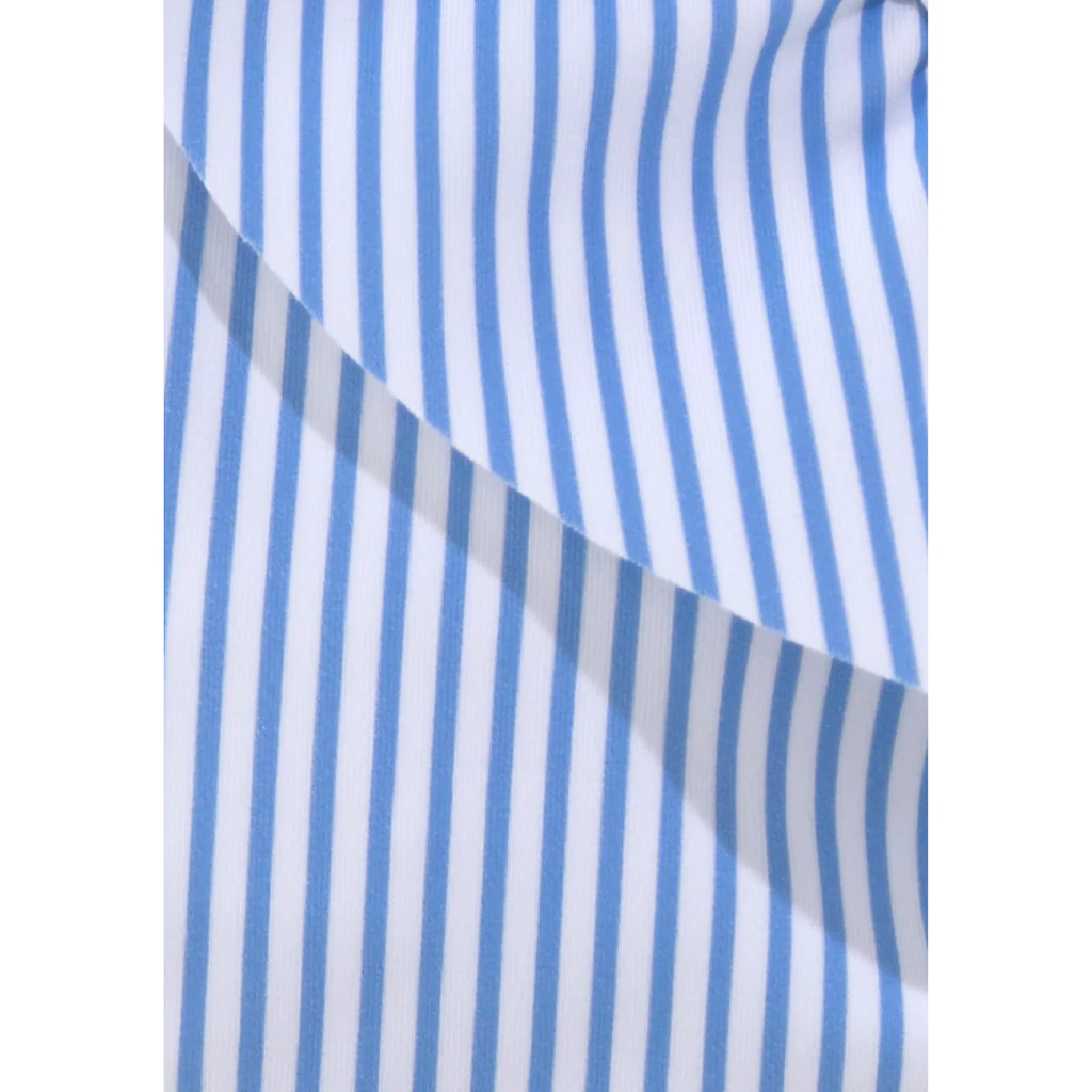 Bustier-Bikini von Buffalo. Maritimes Streifendesign und modische Rüschen an den verstellbaren Trägern. Obermaterial: 80% Polyamid, 20% Elasthan. Futter: 92% Polyester, 8% Elasthan