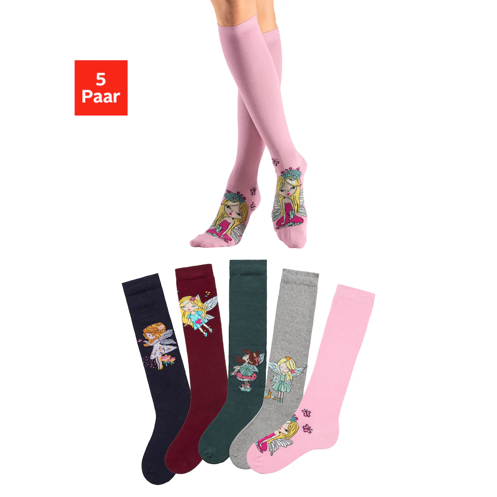 H.I.S Kniestrümpfe, (Packung, 5 Paar), Mit Unterschiedlichen Feendesigns