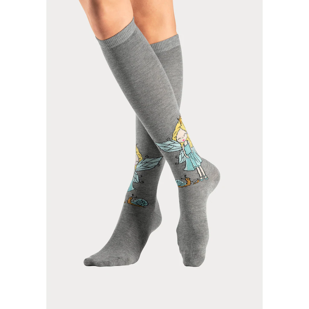 Wunderschöne Kniestrümpfe im 5er-Pack von H.I.S. Mit eingestrickten Feen-Motiven in unterschiedlichen Designs. Alle Motive unterschiedlich positioniert. Flache Spitzennaht und bequeme Bündchen für hohen Komfort. Trageangenehme Baumwollmischung.