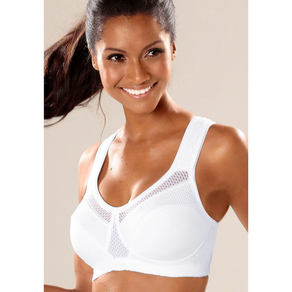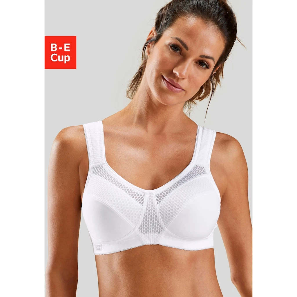 Mit gemusterten Netzeinsätzen. Aus hochwertigem COOLMAX®-Material für einen optimalen Feuchtigkeitstransport. Breite, gefütterte Träger und breiter Rücken für hohen Tragekomfort – auch in großen Größen. Rückenverschluss verstellbar. Für mittlere Belastbarkeit. Klassische Dessous. Bequeme Alltags-Dessous. Modische Dessous. Aus 90% Polyester (COOLMAX®), 10% Elasthan. BHs sind nicht trocknergeeignet, da die Versteller und Ringe durch die Hitze beschädigt werden und brechen.