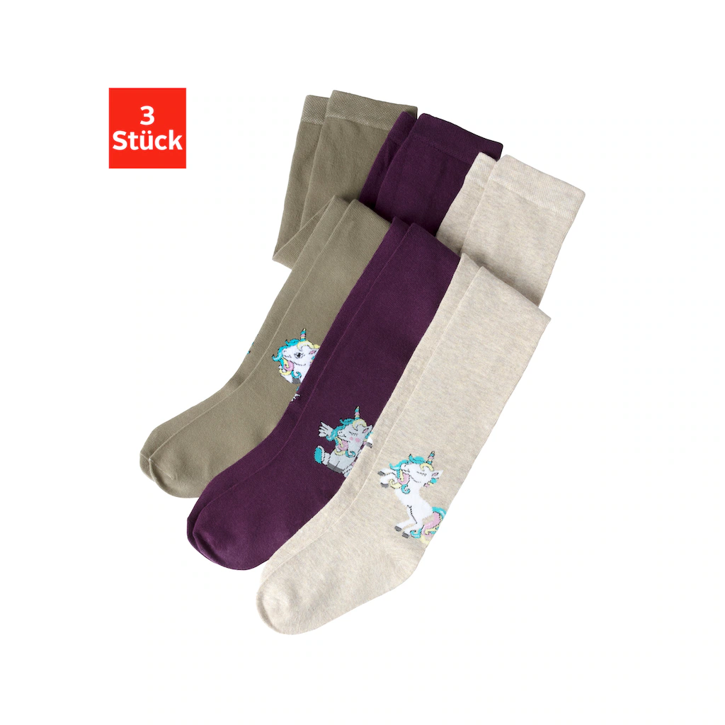 Strickstrumpfhose im 3er-Pack von H.I.S. Mit Einhornmotiven. Weicher, elastischer Glattstrick.