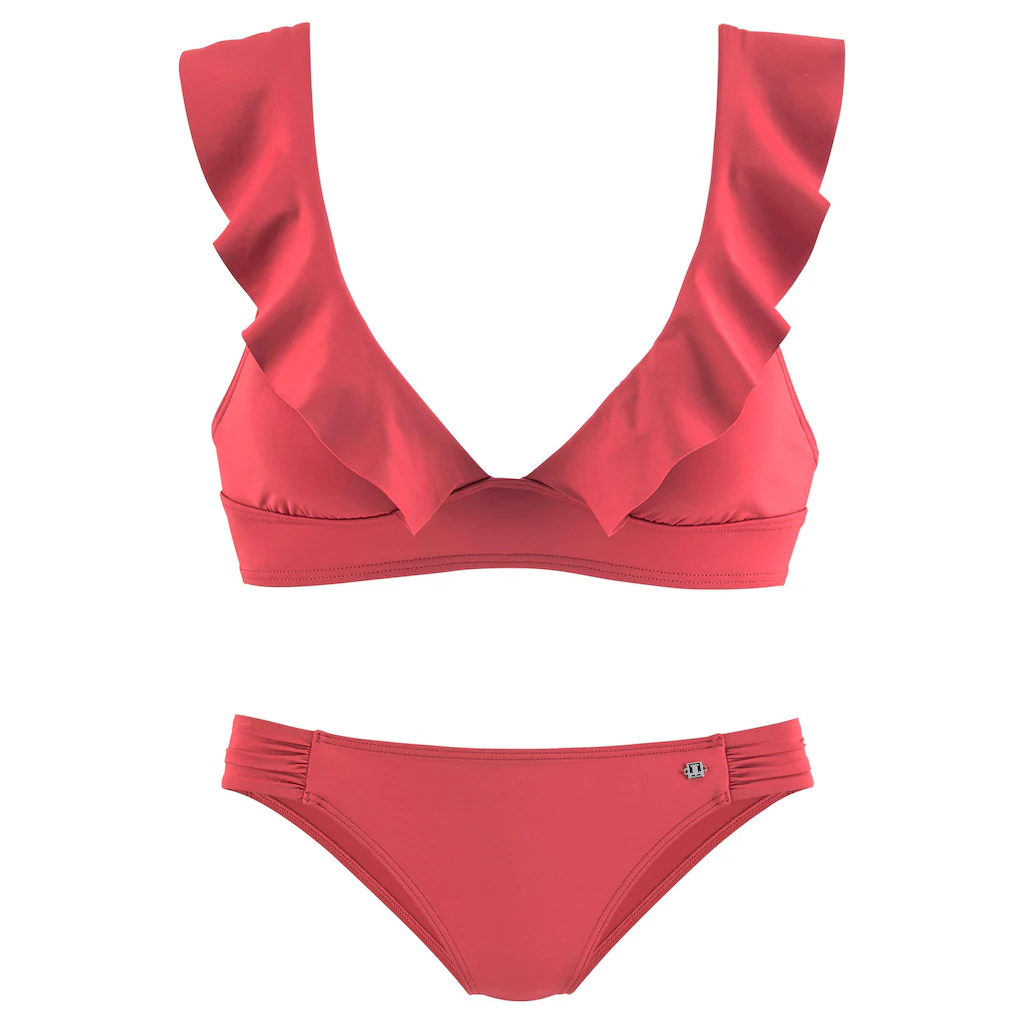 Triangel-Bikini von Designerin Jette Joop. Elegante Rüschenkante. Herausnehmbare Cups. Das Top ist im Rücken zu binden. Geraffte Einsätze an der Bikini-Hose. Obermaterial: 84% Polyamid, 16% Elasthan. Futter: 100% Polyamid