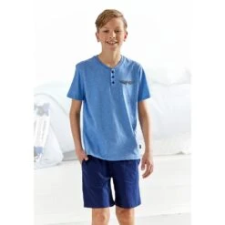 AUTHENTIC LE JOGGER Shorty, (2 Tlg., 1 Stück), Oberteil Mit Knopfleiste Und Logodruck Auf Der Brust