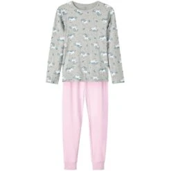 Name It Schlafanzug »NKFNIGHTSET GREY MELANGE UNICORN NOOS«, (2 Tlg.), Mit Einhorn Druck