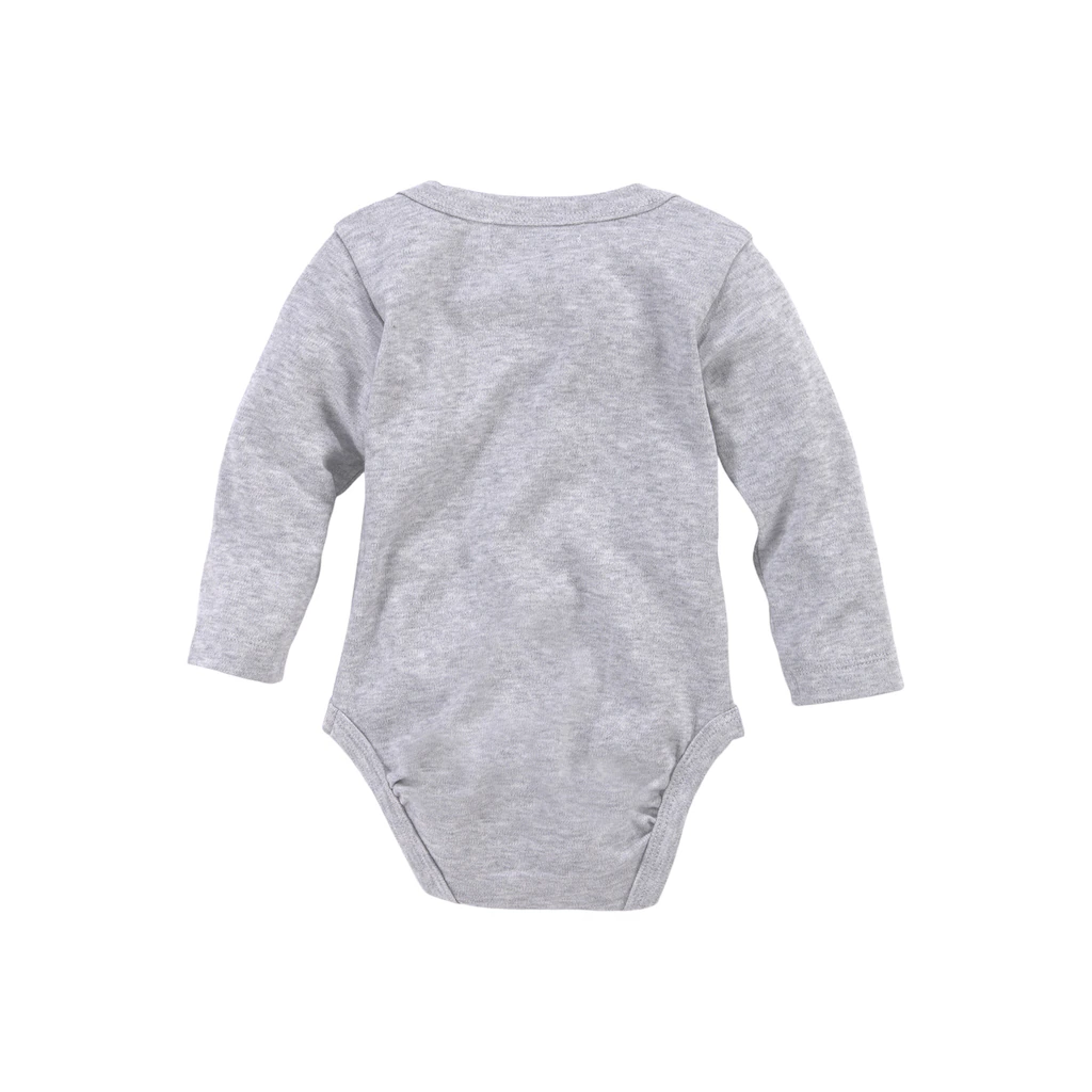 2er-Pack Langarmbodys von Klitzeklein. Meliertes Design mit Sprücheprint vorn. Überlappende Schulterpartie. Druckknopfleiste im Schritt. Trageangenehme Jerseyqualität.
