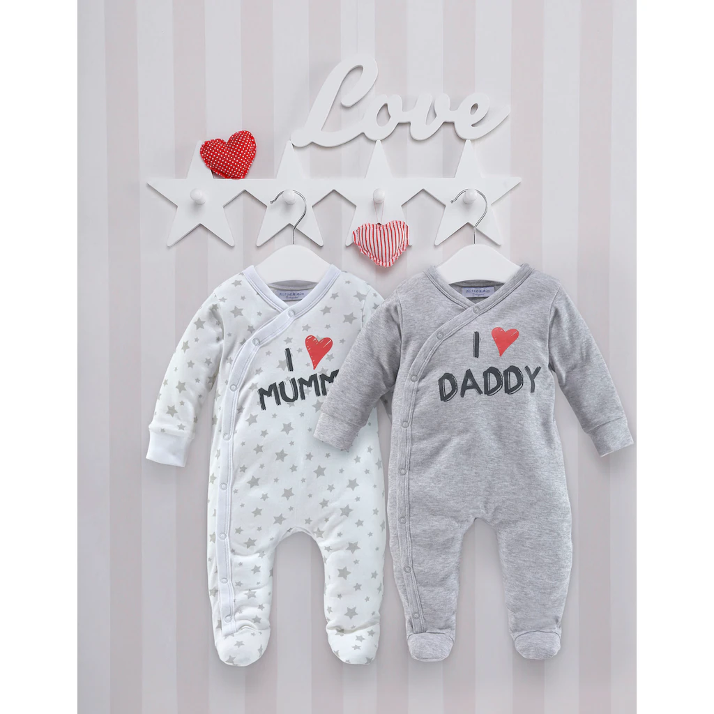 Klitzeklein Schlafoverall »I Love Mummy / I Love Daddy«, (Packung, 2 Tlg., 2er-Pack), Aus Bio-Baumwolle, Baby-Overalls