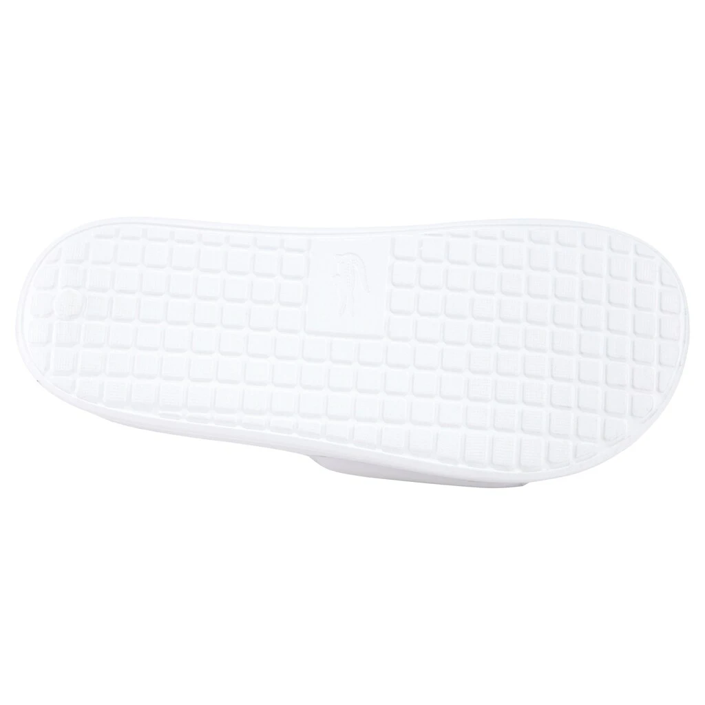 Ob Strand, See oder Pool — schnell reingeschlüpft in die Badesandalen von Lacoste und der Fuß ist geschützt. Das Obermaterial aus Synthetik ist kaum schmutzempfindlich. Somit lassen sich Flecken einfach abwischen. Die Badebekleidung sitzt — jetzt fehlen nur noch die Badesandalen, um auf dem Weg ins kühle Nass nicht auszurutschen.