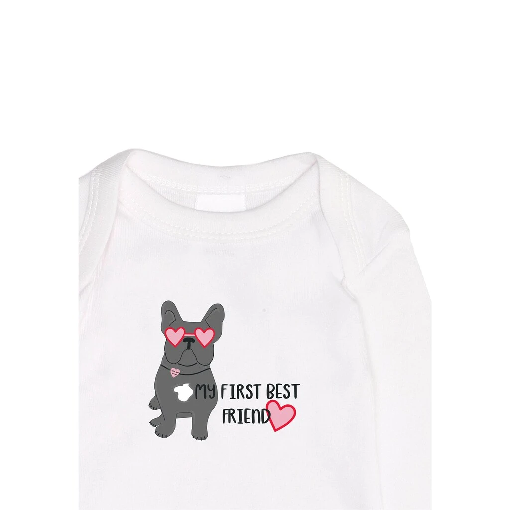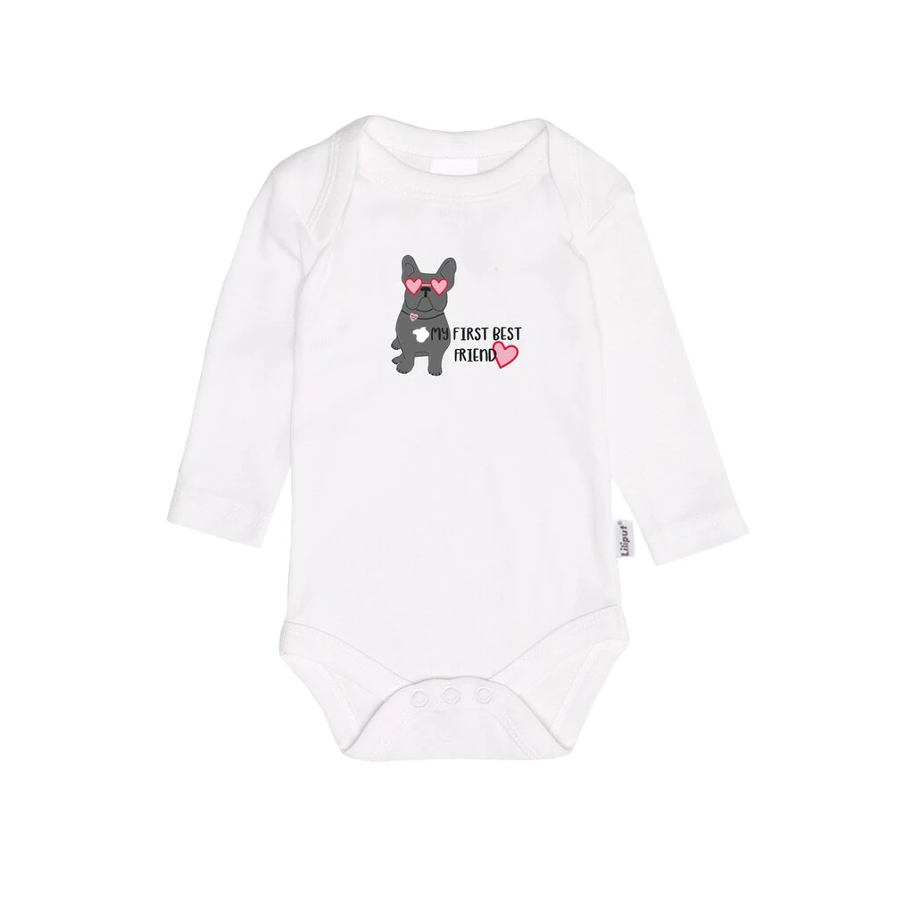 Dieser Doppelpack enthält eine tolle Kombination aus einem graumelangen, schlichten Body und einem weißen Modell mit Bulldoggen- und „First Best Friend“-Frontprint. Das besondere am Amineck-Halsausschnitt ist die extra weite Kopföffnung, die neben den drei Druckknöpfen im Schritt für ein einfaches An- und Ausziehen sorgt. Wie bei allen Liliput Produkten überzeugt die hautfreundliche Qualität aus weicher Baumwolle, die zudem einen angenehmen Tragekomfort gewährleistet. Das Set eignet sich auch hervorragend zum Verschenken.