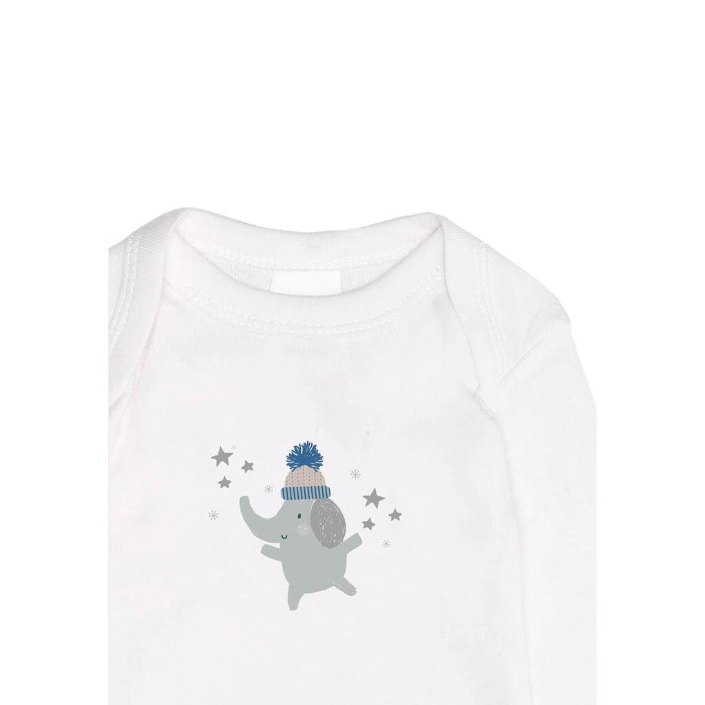 Dieses Doppelpack enthält eine tolle Kombination aus einem einfarbigen, graumelangen Body und einem weißen Modell mit tollem Elefanten-Frontdruck. Das besondere am Amineck-Halsausschnitt ist die extra weite Kopföffnung, die neben der drei Druckknöpfe im Schritt für ein einfaches An- und Ausziehen sorgt. Wie bei allen Liliput Produkten überzeugt die hautfreundliche Qualität aus weicher Baumwolle, die zudem angenehmen Tragekomfort gewährleistet. Das Set eignet sich hervorragend zum Verschenken.