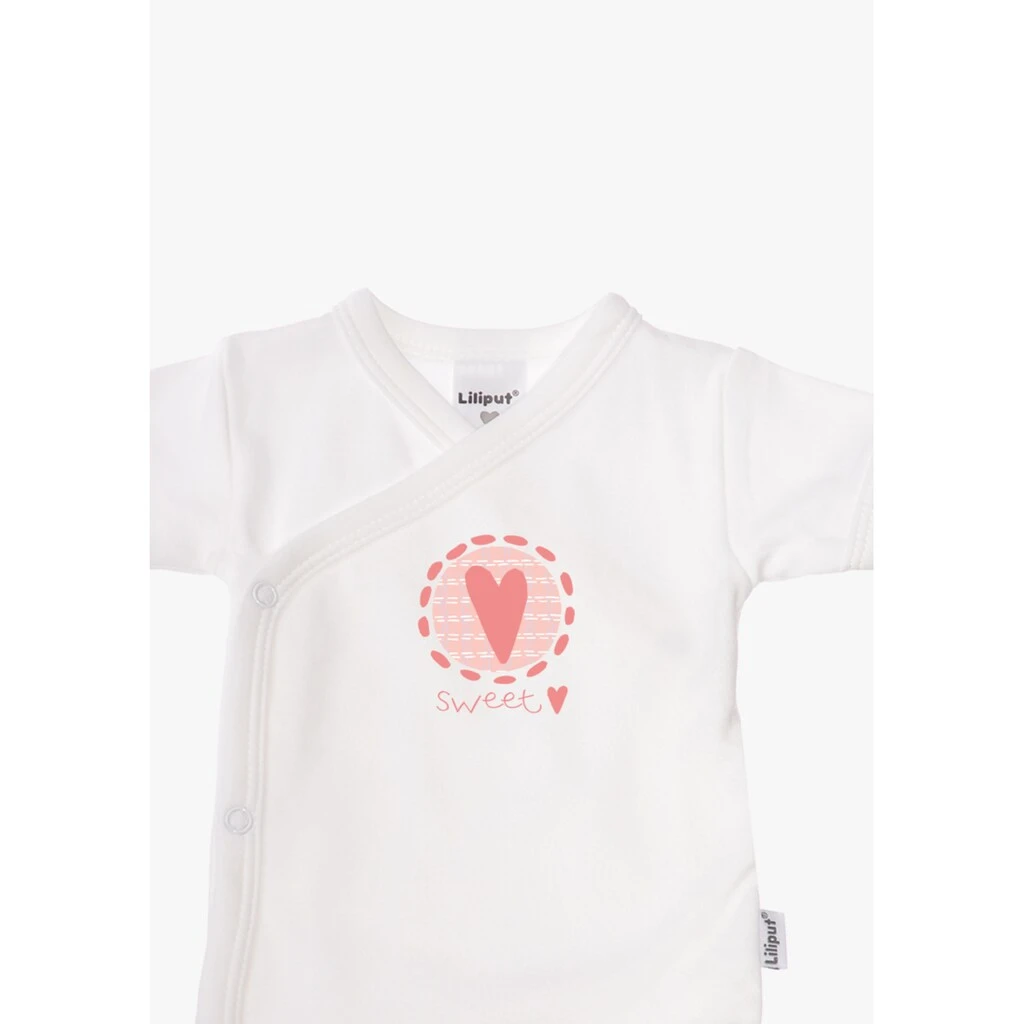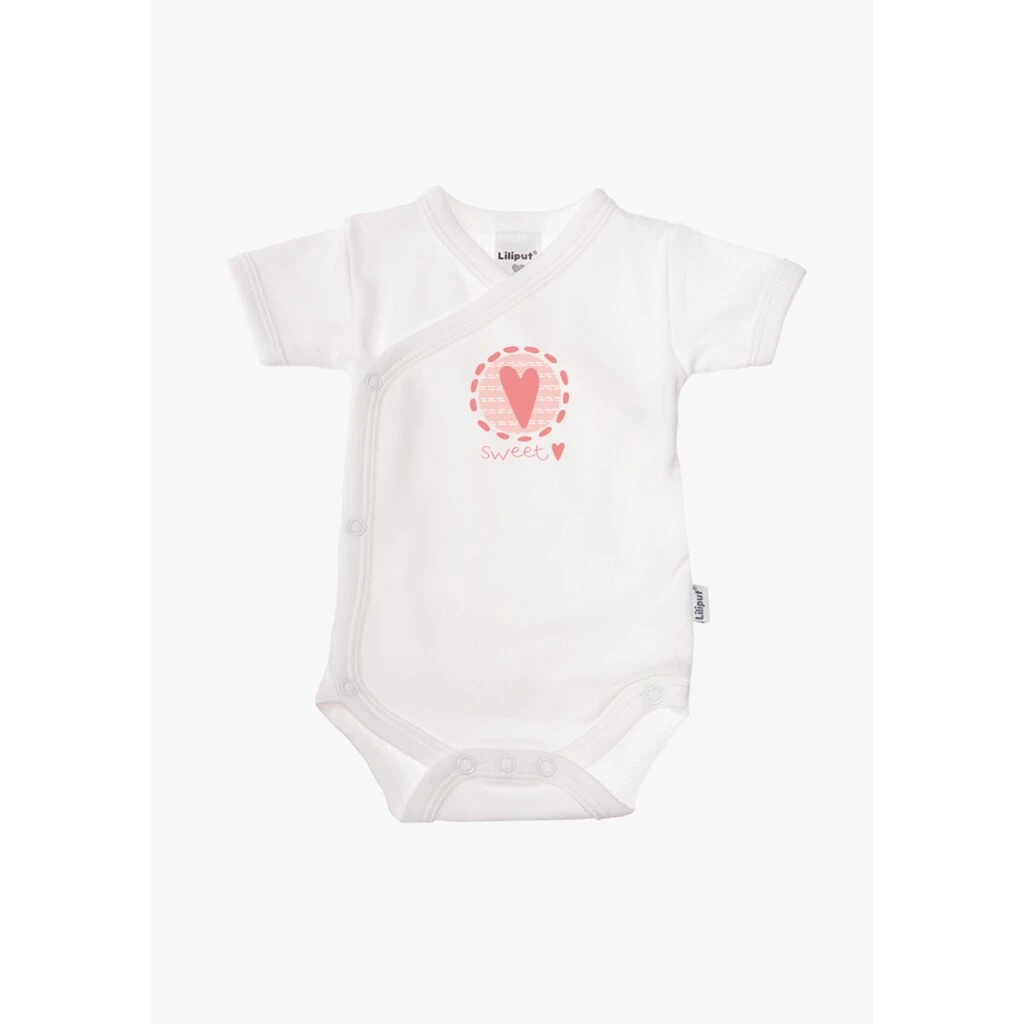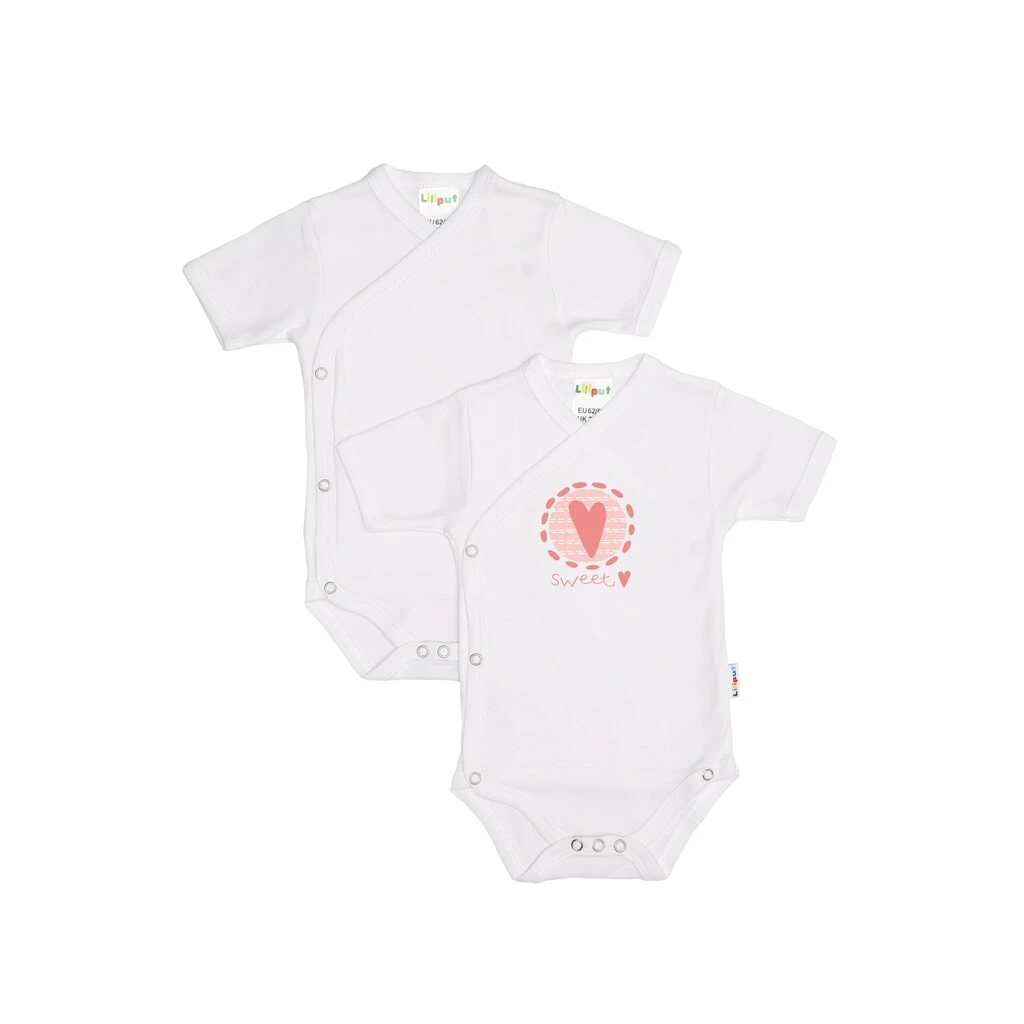 Der niedliche, weiße Wickelbody von Liliput für Kleinkinder kommt im 2er-Set. Das Set enthält einen Wickelbody in Uni-Weiß ohne Frontdruck und einen in Weiß mit süßem Herz-Frontdruck. Die praktische, lange Druckknopfleiste macht das An- und Ausziehen sehr leicht. Wie immer bei allen Liliput-Produkten überzeugt die hautfreundliche Qualität aus hochwertiger weicher Baumwolle. Windelwechsel ist mit diesem 2er-Set schnell und einfach erledigt. Der bedruckte Body ist bis 40 Grad in der Maschine waschbar.