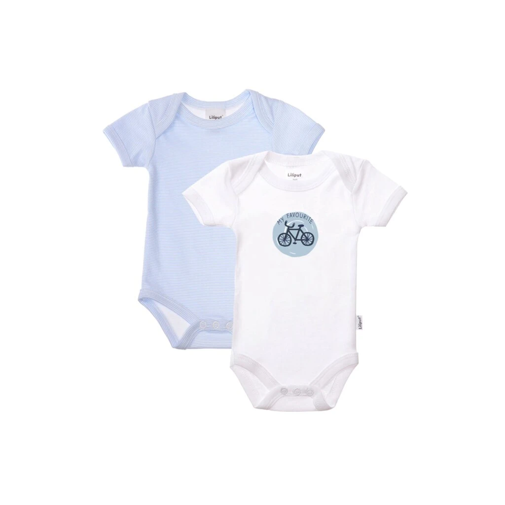 Dieses Doppelpack enthält eine tolle Kombination aus einem geringelten und einem einfarbigen Amineckbody mit Fahrrad-Motiv und Spruch „My favourite“. Das besondere am Amineck-Halsausschnitt ist die extra weite Kopföffnung, die neben den drei Druckknöpfen im Schritt für ein einfaches An- und Ausziehen sorgt. Wie bei allen Liliput Produkten überzeugt die hautfreundliche Qualität aus weicher Baumwolle, die zudem angenehmen Tragekomfort gewährleistet.