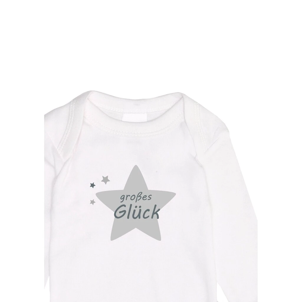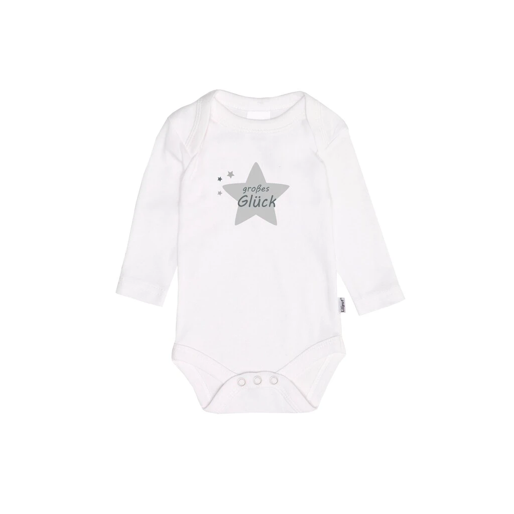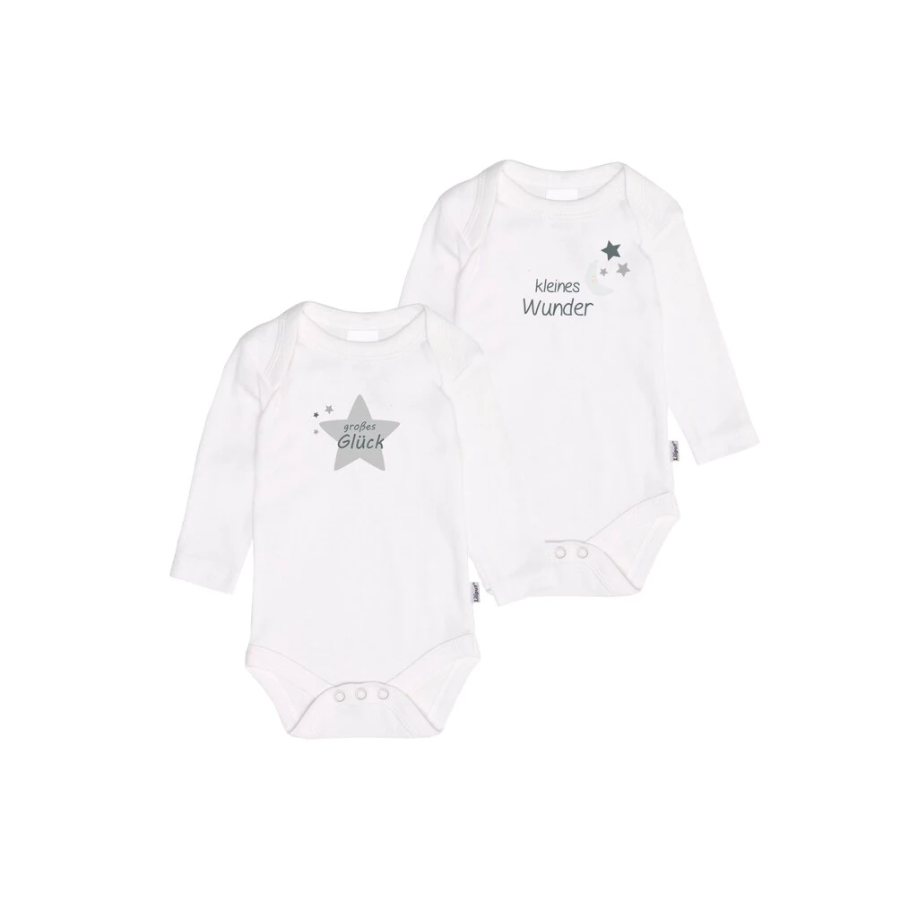 Das neue Langarmbody-Set von Liliput überzeugt mit schönem Sternenmotiv. Diese Langarmbodies im Doppelpack sind mit den beiden Sprüchen „Kleines Wunder“ und „Großes Glück“ ein niedlicher Hingucker. Das besondere am Amineck-Halsausschnitt ist die extra weite Kopföffnung, die neben den drei Druckknöpfen im Schritt für ein einfaches An- und Ausziehen sorgen. Wie bei allen Liliput Produkten überzeugt die hautfreundliche Qualität aus weicher Baumwolle, die zudem angenehmen Tragekomfort gewährleistet.
