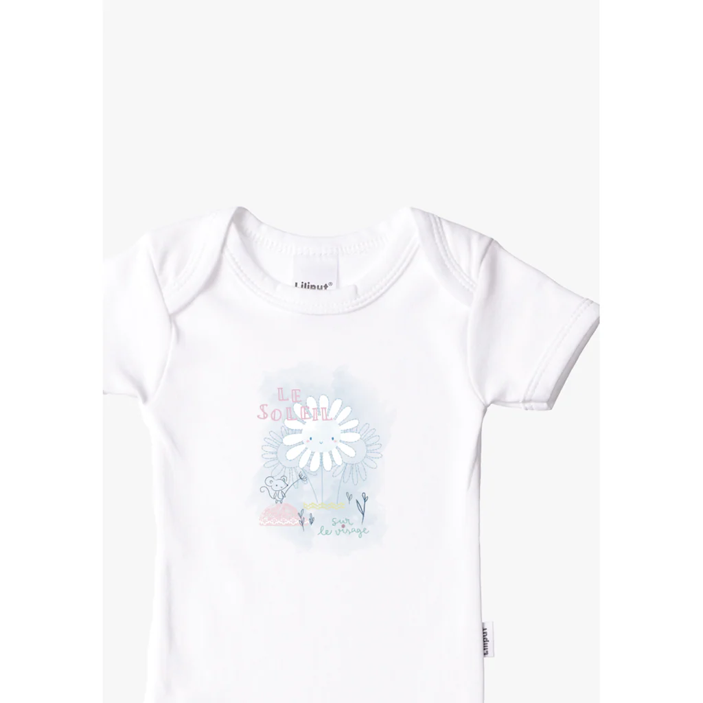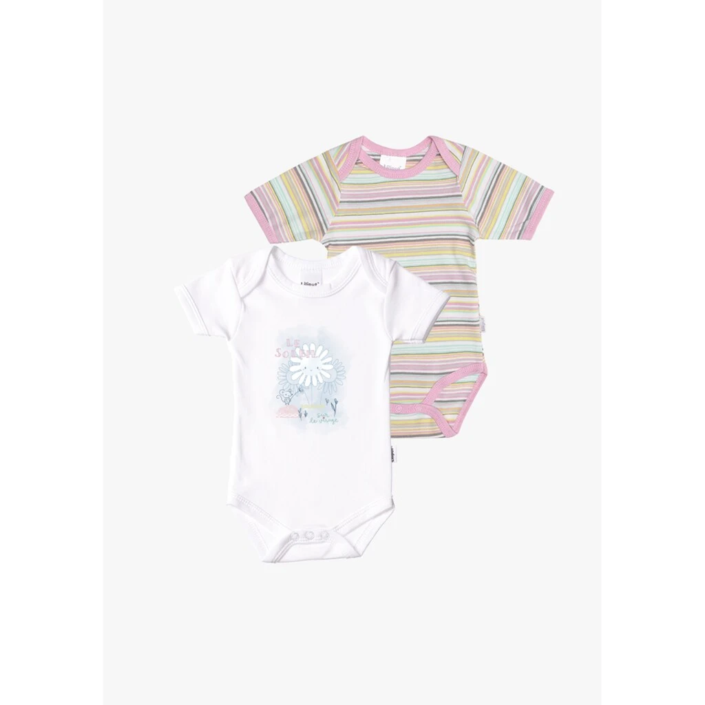 Das Kurzarmbody-Set der Marke Liliput enthält einen Kurzarmbody in Rosa geringelt und einen in Weiß mit niedlichem Frontdruck. Der praktische Druckknopfverschluss im Schritt macht das An- und Ausziehen sehr leicht. Wie immer bei allen Liliput Produkten überzeugt die hautfreundliche Qualität aus weicher Baumwolle und Elasthan. Das Windelwechseln wird mit dem 2er-Pack von jetzt an super leicht gemacht. Der geringelte Body ist aus 95% Baumwolle und 5% Elasthan, der weiße Body aus 100 % Baumwolle gefertigt.