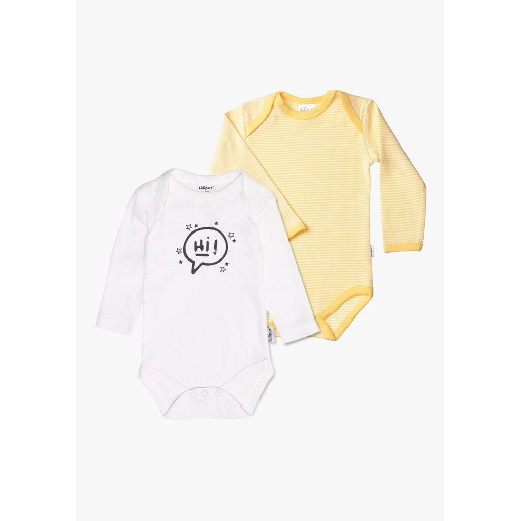 Dieses praktische Set der Marke Liliput enthält zwei Langarmbodys: einen geringelten Body und einen mit niedlichem Frontdruck. Der praktische Druckknopfverschluss im Schritt macht das An- und Ausziehen sehr leicht. Wie immer bei allen Liliput Produkten überzeugt die hautfreundliche Qualität aus weicher Baumwolle. Mit diesem 2er-Set ist das Windelwechseln von nun an besonders leicht und schnell gemacht.