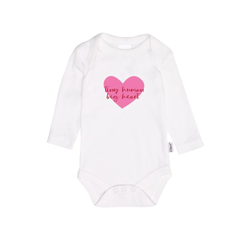 Diese süßen Langarmbodys der Marke Liliput kommen im praktischen Doppelpack. Sie begeistern mit ihren pinken Statementprints: „tiny human – big heart“ und „Handle with love and care“. Jeder Body verfügt über drei Druckknöpfe im Schritt, die das An- und Ausziehen enorm erleichtern. Zudem sind sie aus hochwertiger, reiner Baumwolle gefertigt, wodurch sie mit ihrem weichen Tragegefühl zusätzlich überzeugen.