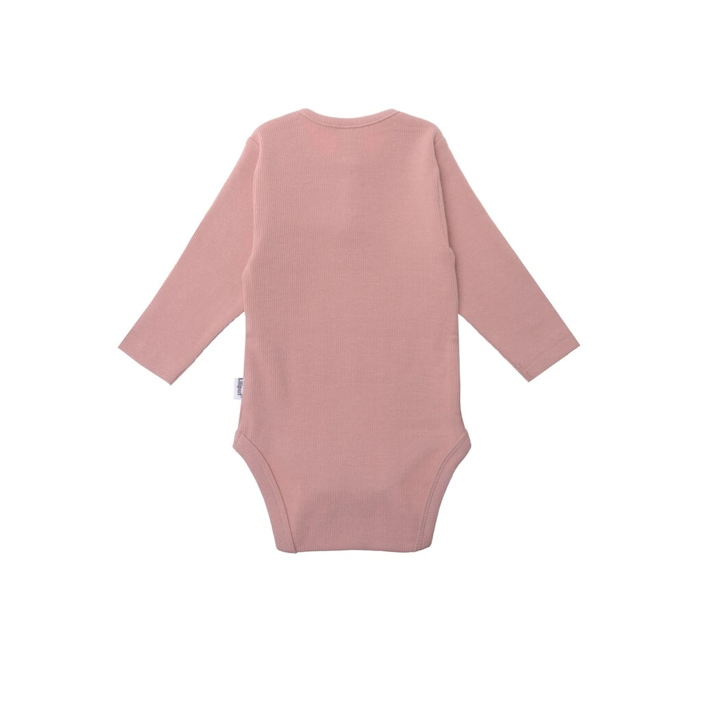 Dieser niedliche Babybody mit langen Ärmeln besteht aus weichem Ripp mit Druckknopf am Ausschnitt. Die praktischen Druckknöpfe im Schritt sorgen außerdem für ein leichtes An- und Ausziehen. Mit dem kuschelig weichen Material schmiegt sich der Body wunderbar an.