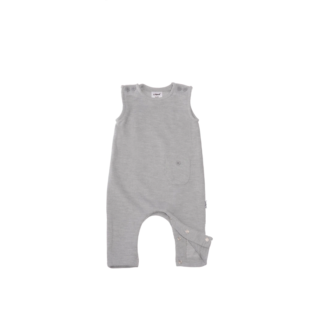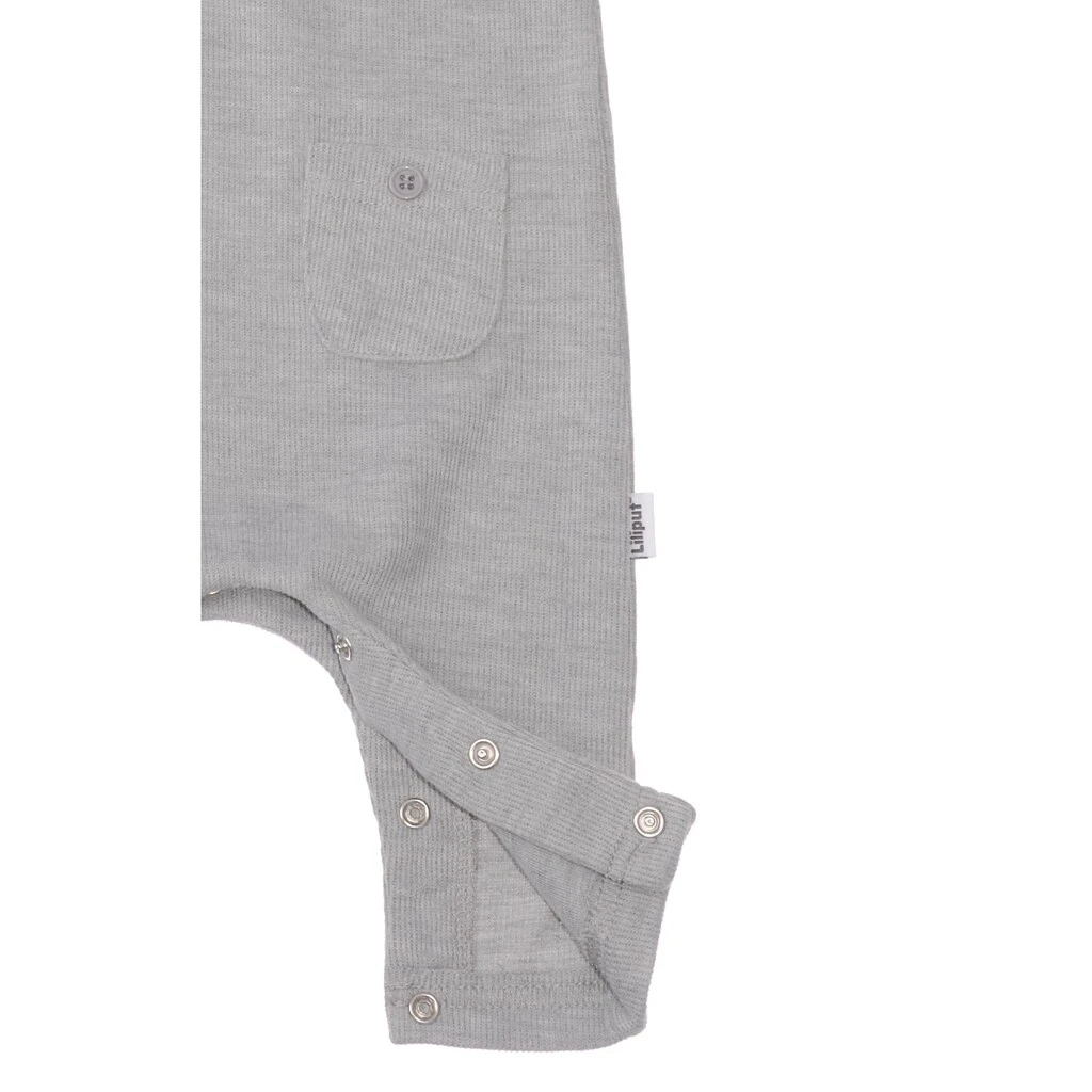 Dieser Liliput Strampler kommt in weicher French-Rib-Qualität und mit offenem Beinabschluss. Zum einfachen An- und Ausziehen und zum unkomplizierten Wechseln der Unterbekleidung sind die Träger mit jeweils zwei Druckknöpfen ausgestattet. Eine durchgehende Druckknopfleiste, die über den Schrittbereich entlang der Innenbeine verläuft, sorgt außerdem für ein schnelles und gutgelauntes Wechseln der Windel, ohne die Oberbekleidung komplett ablegen zu müssen. Vorne ist eine kleine Tasche aufgesetzt.