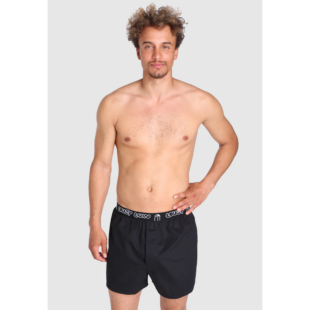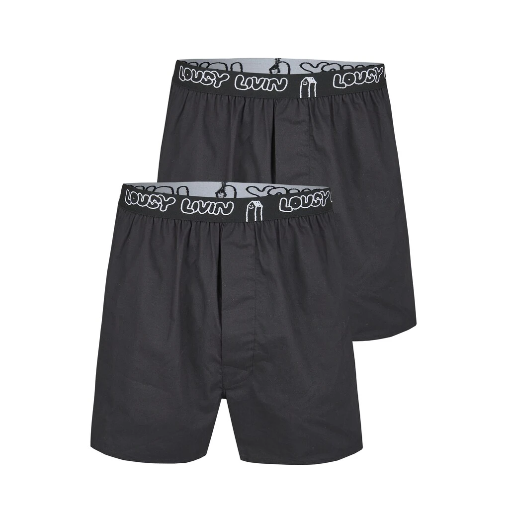Angenehm zu tragen ist diese Boxershort der Marke Lousy Livin für Herren. Hochwertig verarbeitet bietet sie einen tollen Sitz ohne Zwicken und Kneifen. Der Bund wird mit Markenschriftzug und witzigem Print verziert.