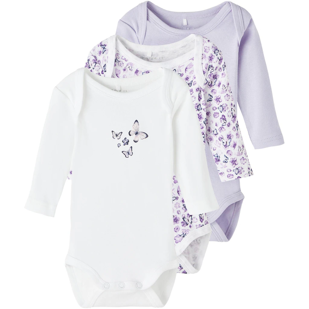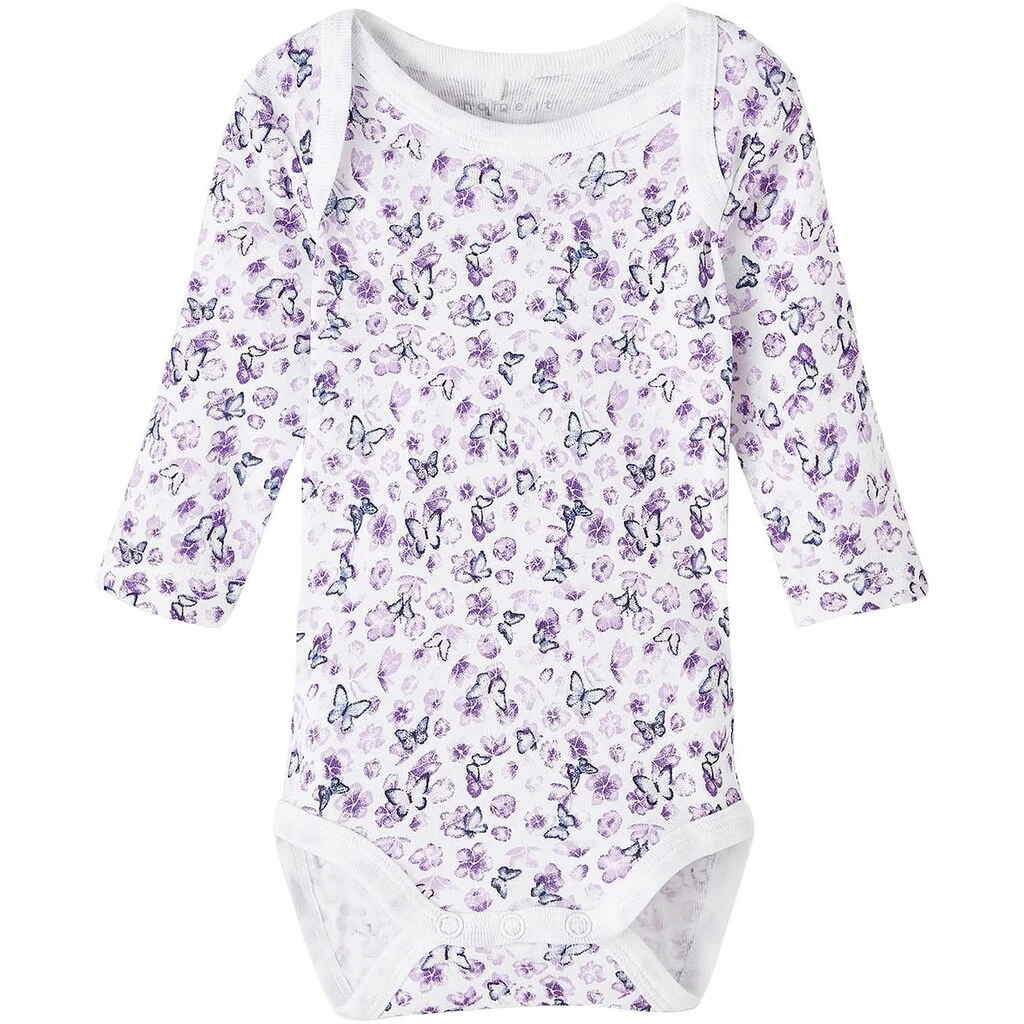Name It Langarmbody »NBFBODY 3P LS PURPLE FLOWER NOOS«
