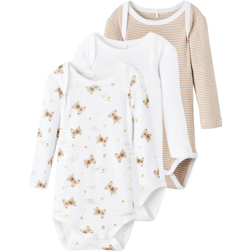 Name It Langarmbody »NBNBODY 3P LS INCENSE TEDDY«, (Packung, 3 Tlg.)
