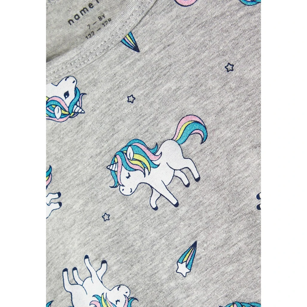 Name It Schlafanzug »NKFNIGHTSET GREY MELANGE UNICORN NOOS«, (2 Tlg.), Mit Einhorn Druck