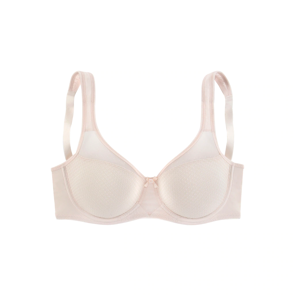 Nuance: Minimizer-BH mit Bügel. Leicht transparente Netzeinsätze im Obercup. Nahtlos vorgeformte Cups. Durch die besondere Schnittführung wird die Büste optisch verkleinert. Träger und Rückenverschluss verstellbar. Klassische Dessous. Bequeme Alltags-Dessous. Modische Dessous. Aus 79% Polyamid, 15% Polyester, 6% Elasthan