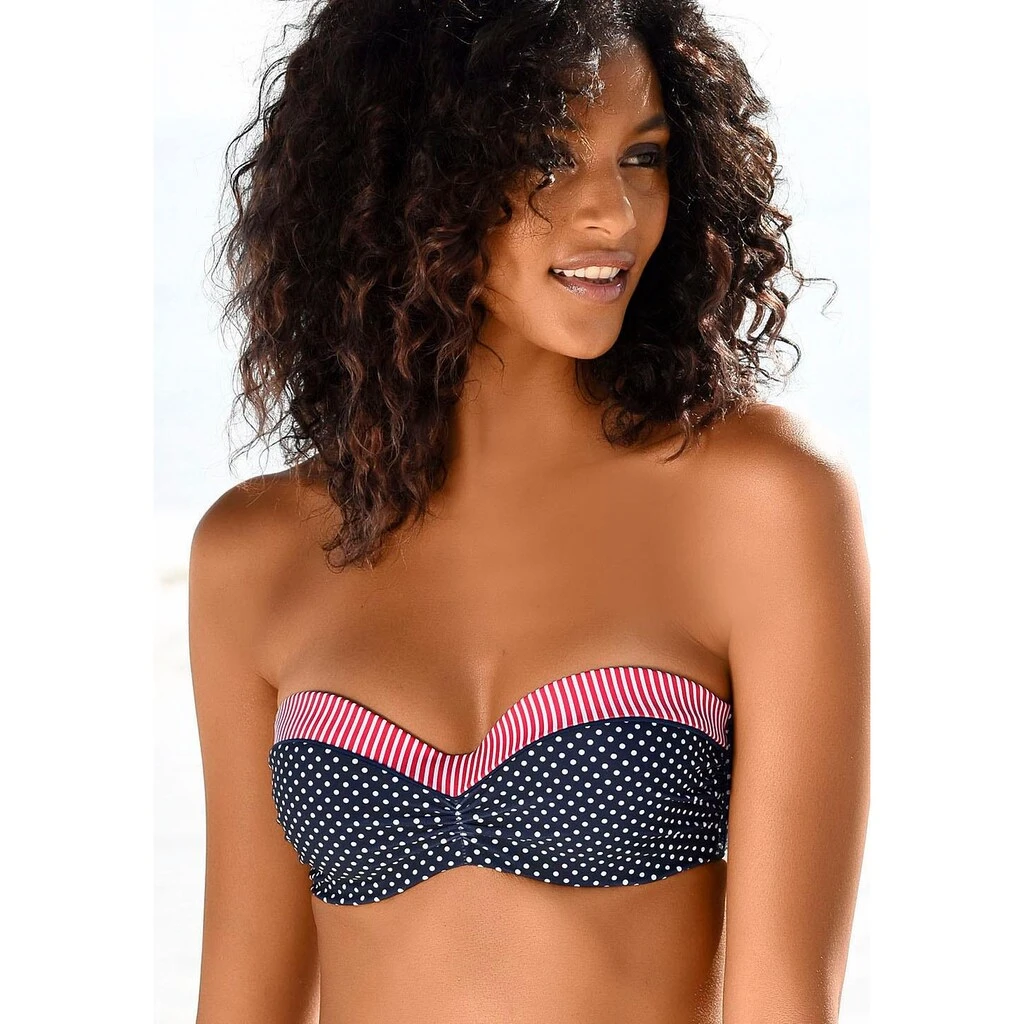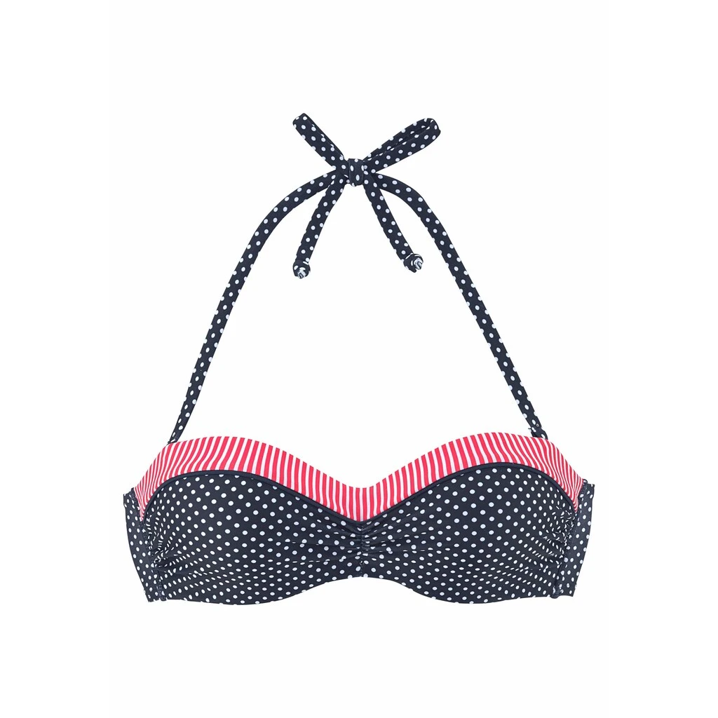 Im modischen Mix mit Punkte- und Streifenprints. Mit wattierten Cups und seitlichen Stäbchen für eine schönes Dekolleté mit guten Halt. Abnehmbare Träger, im Nacken zu binden. Top im Rücken zu schließen.