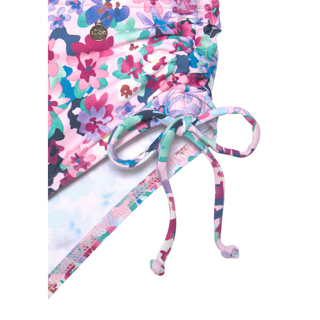 Bikini-Hose von s.Oliver mit hübschem Blumenprint. Beinausschnitte höher geschnitten und mittels Bindebändern individuell zu regulieren. Nach Lust und Laune kombinierbar. Elastisches Material.