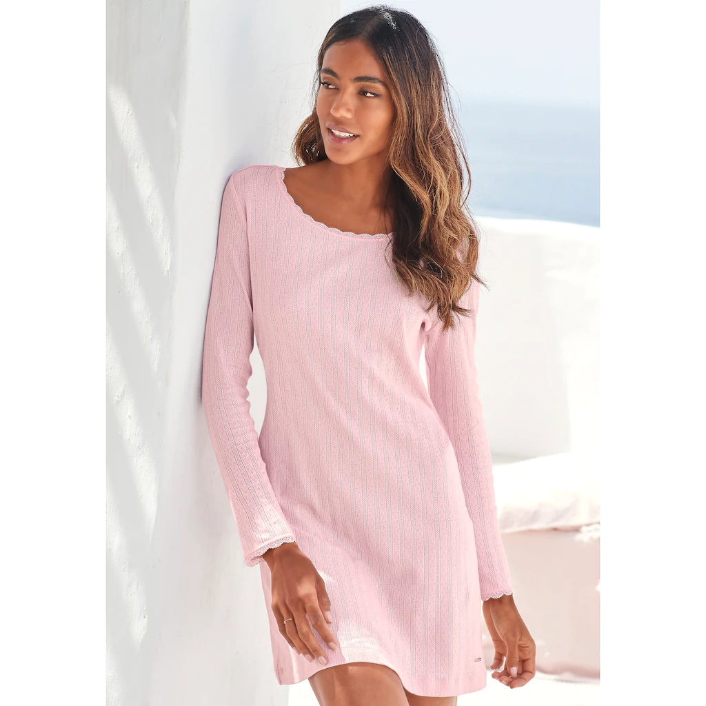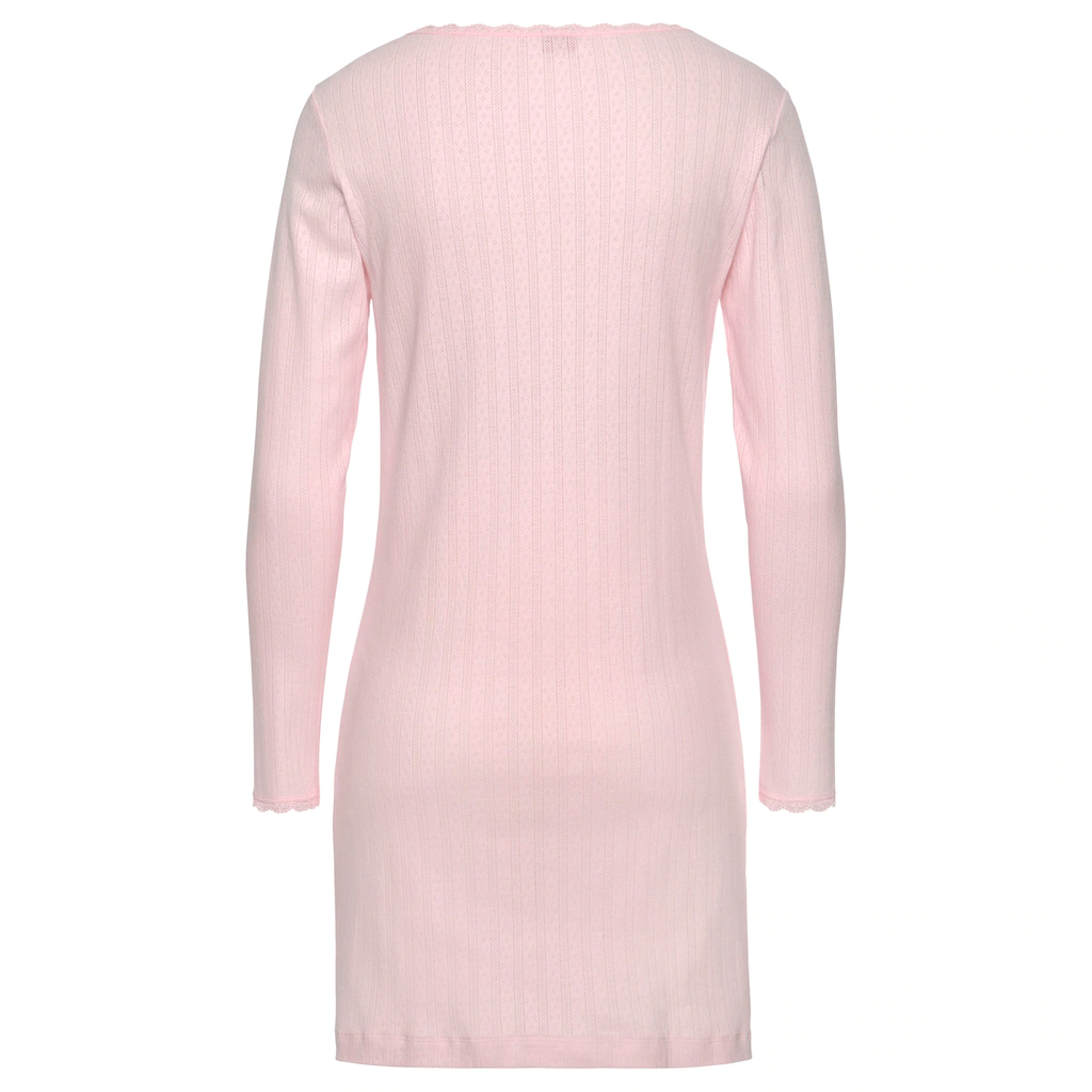 Nachthemd mit feiner Häkelkante am Rundhalsauschnitt in Midi länge. Angenehme Baumwollqualität.
