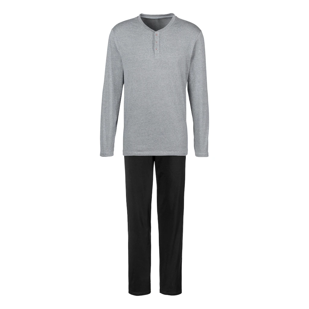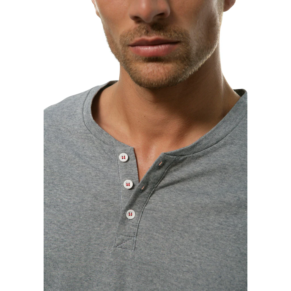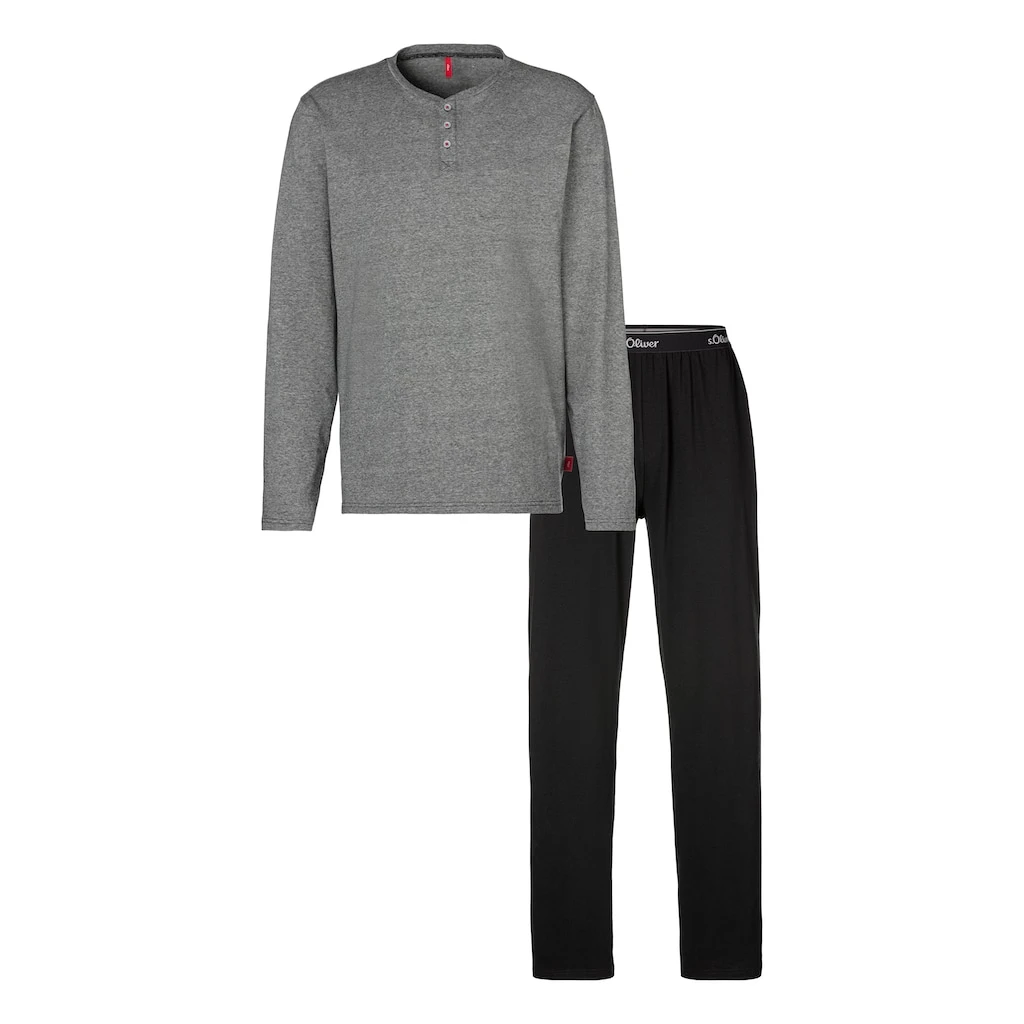 S.Oliver Pyjama, (2 Tlg., 1 Stück), Melange Oberteil Mit Knopfleiste