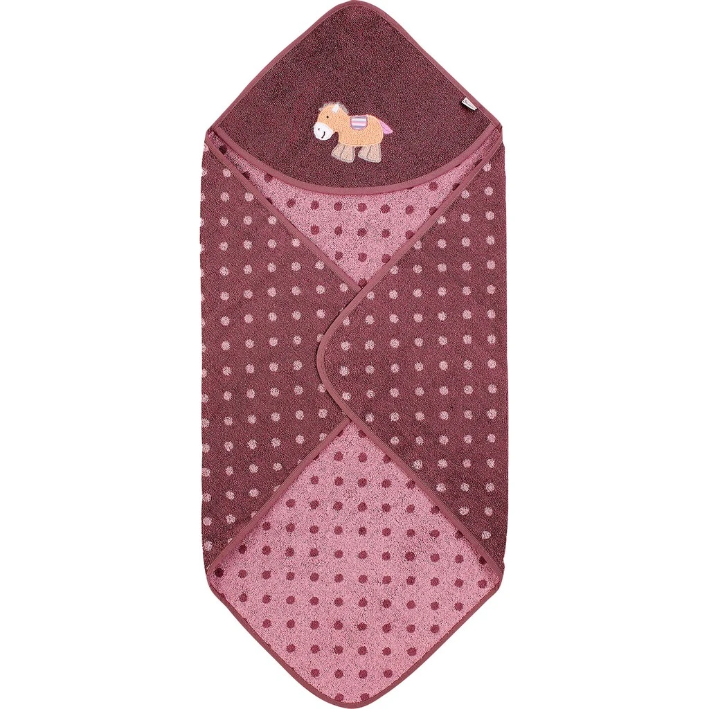 Kapuzen-Badetuch aus weichem Frottee mit appliziertem Stickmotiv Pony Pauline. Die Kuschelgarantie nach dem Baden.