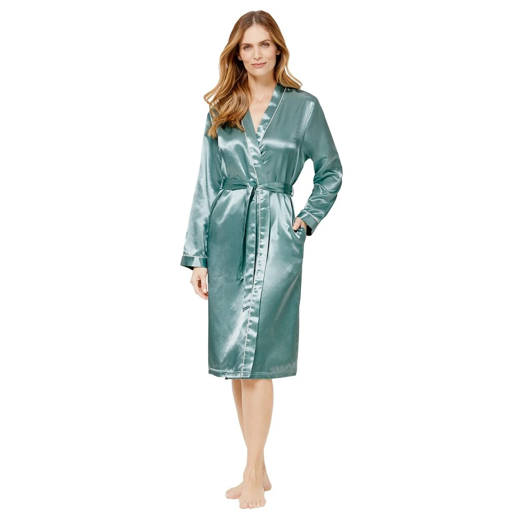 Morgenmantel aus Satin. In beliebter Kimonoform. 2 großzügige Taschen. 83% Polyester, 17% Baumwolle.